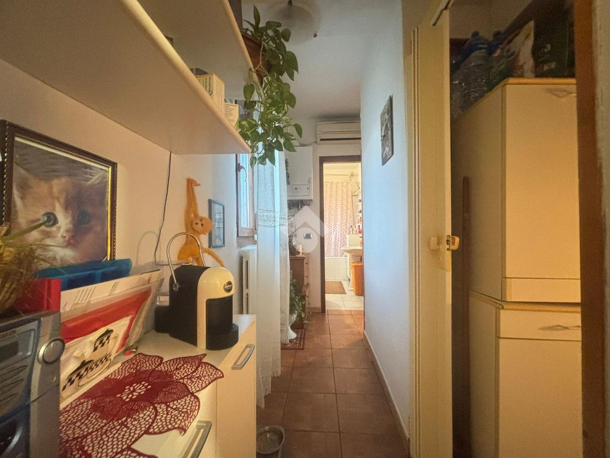 L'appartamento si presenta in discrete condizioni interne con infissi in legno con doppi vetri ed uno split di aria condizionata nel disimpegno che raffresca tutti gli ambienti.