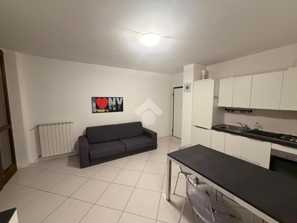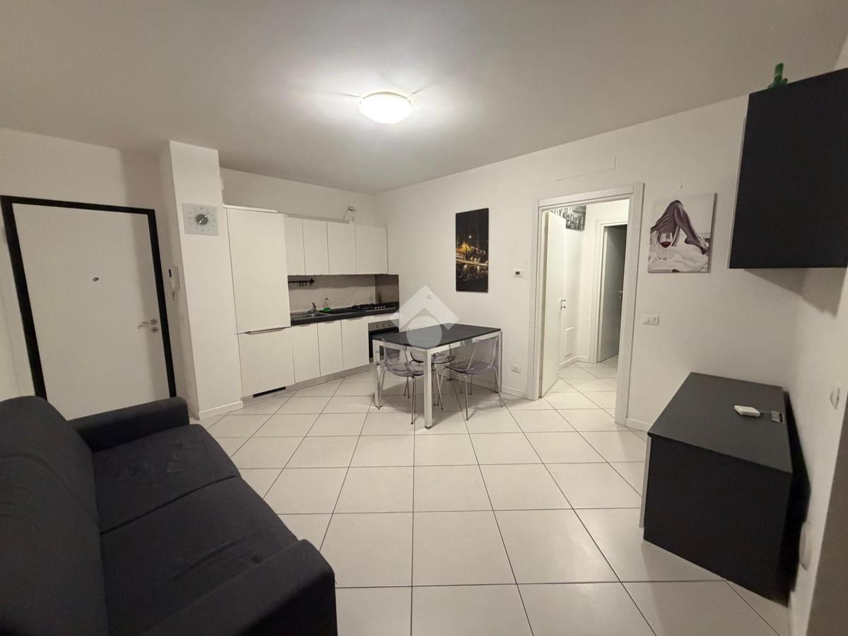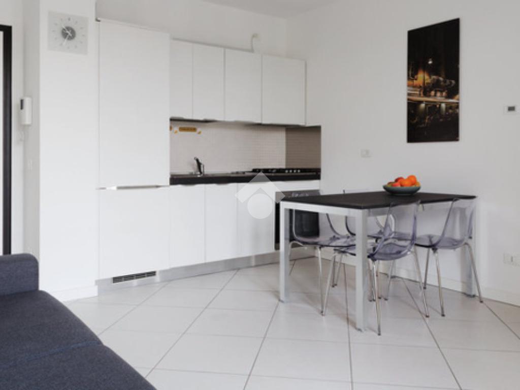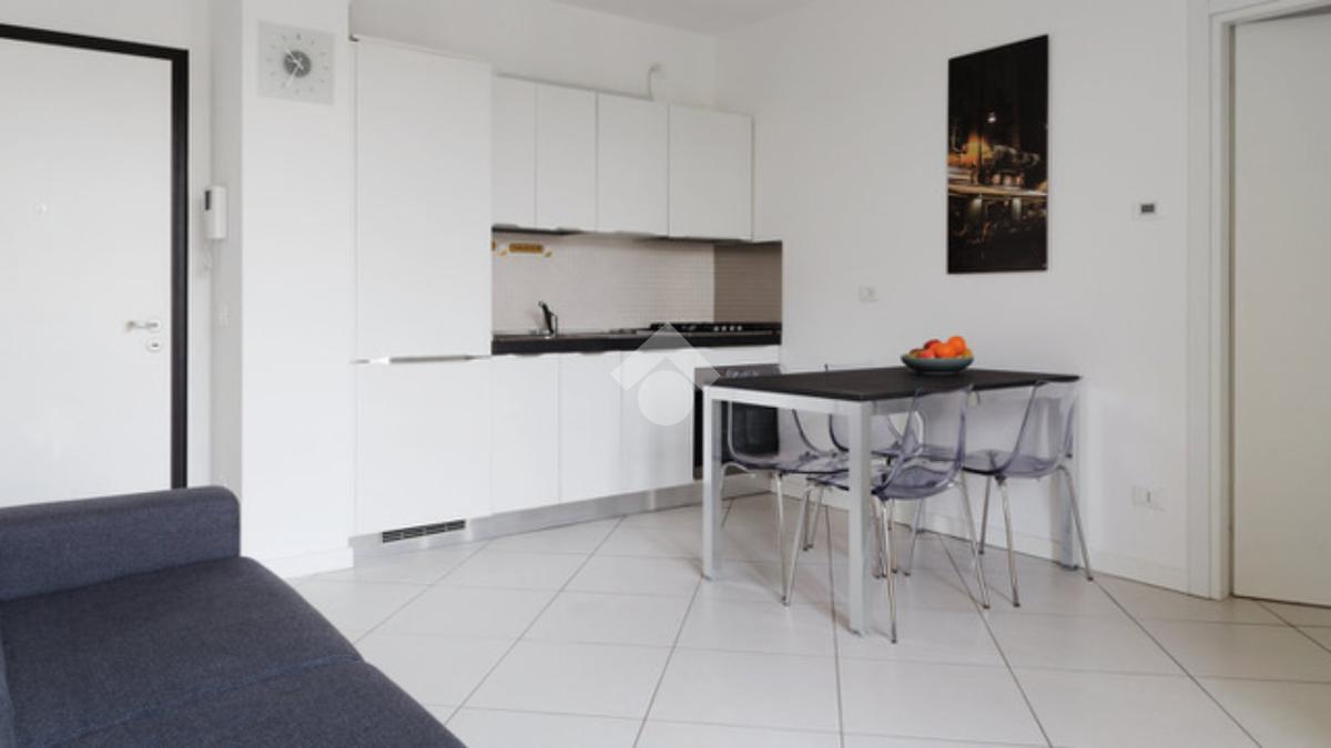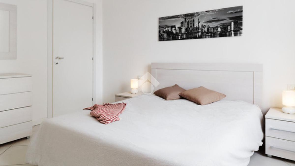L'appartamento risulta essere così composto: Ingresso in ampia e luminosa zona living composta dal soggiorno con cucina a vista e con accesso diretto, tramite porta finestra, al balcone completo di zanzariere. Di seguito il disimpegno che separa la zona giorno dalla zona notte. In essa troviamo una camera da letto matrimoniale con punto luce e servizio finestrato con box doccia . Plus non indifferente è da notare nella doppia esposizione che regala un’ottima luce naturale in tutta l'abitazione oltre che un’ottima areazione, creando ambienti caldi d'inverno e freschi d'estate. Infissi in doppio vetro legno e zanzariere presenti in tutti i punti luce, predisposizione aria condizionata sia nella zona giorno che nella zona notte. Lo stabile è di recente costruzione con ottimi materiali di rifinitura esterni che sposa perfettamente lo stile interno dell'abitazione, di fatti i materiali utilizzati all'interno sono anch'essi di ottima qualità. Pavimentazione in ceramica in tutti gli ambienti.