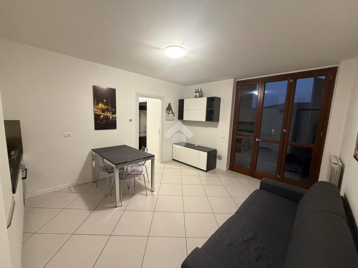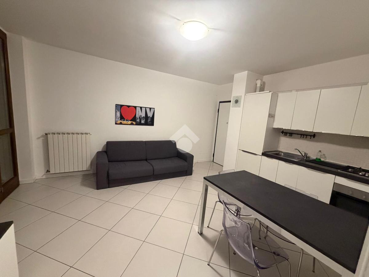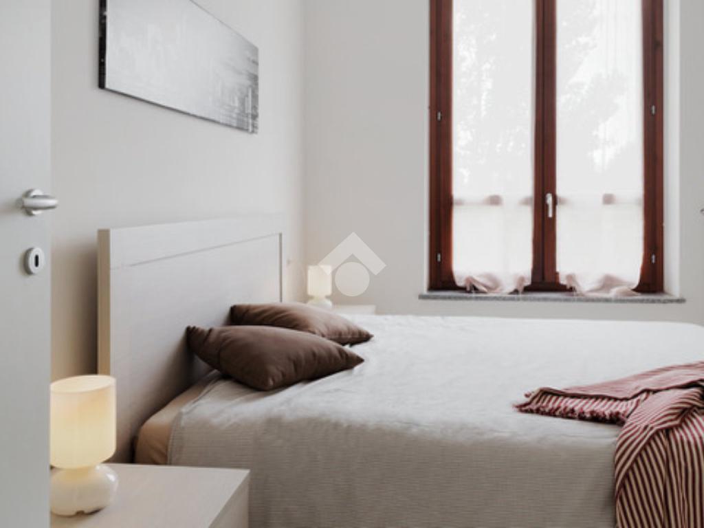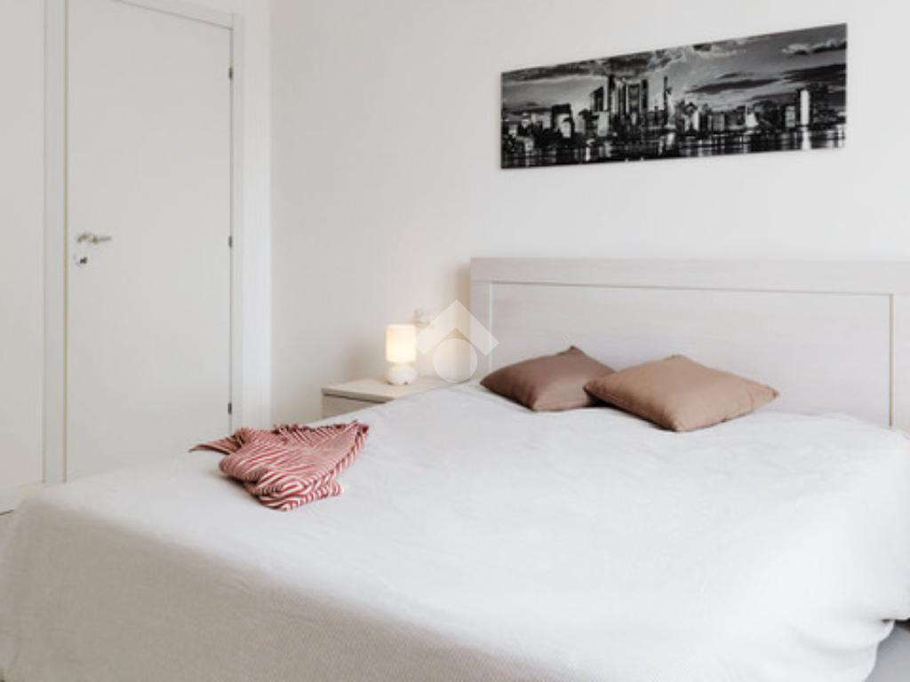 L'appartamento risulta essere così composto: Ingresso in ampia e luminosa zona living composta dal soggiorno con cucina a vista e con accesso diretto, tramite porta finestra, al balcone completo di zanzariere. Di seguito il disimpegno che separa la zona giorno dalla zona notte. In essa troviamo una camera da letto matrimoniale con punto luce e servizio finestrato con box doccia . Plus non indifferente è da notare nella doppia esposizione che regala un’ottima luce naturale in tutta l'abitazione oltre che un’ottima areazione, creando ambienti caldi d'inverno e freschi d'estate. Infissi in doppio vetro legno e zanzariere presenti in tutti i punti luce, predisposizione aria condizionata sia nella zona giorno che nella zona notte. Lo stabile è di recente costruzione con ottimi materiali di rifinitura esterni che sposa perfettamente lo stile interno dell'abitazione, di fatti i materiali utilizzati all'interno sono anch'essi di ottima qualità. Pavimentazione in ceramica in tutti gli ambienti.