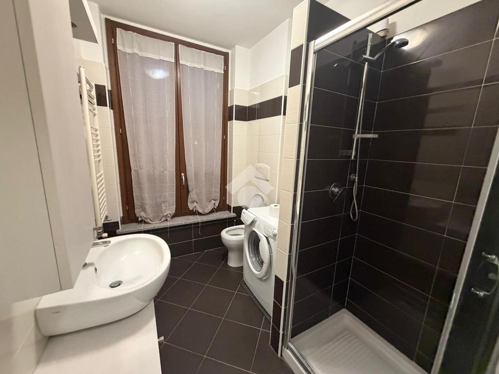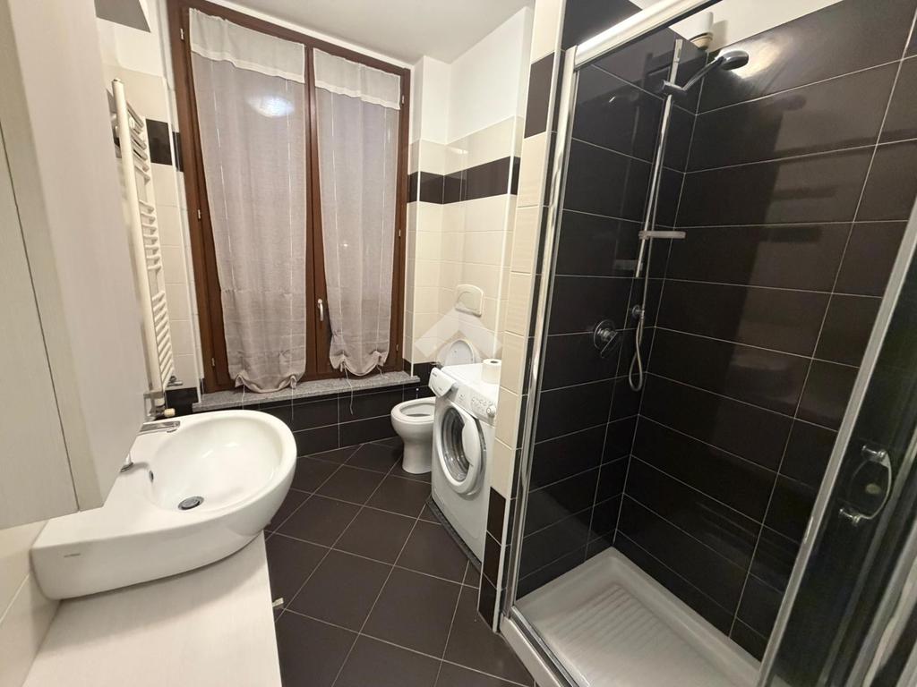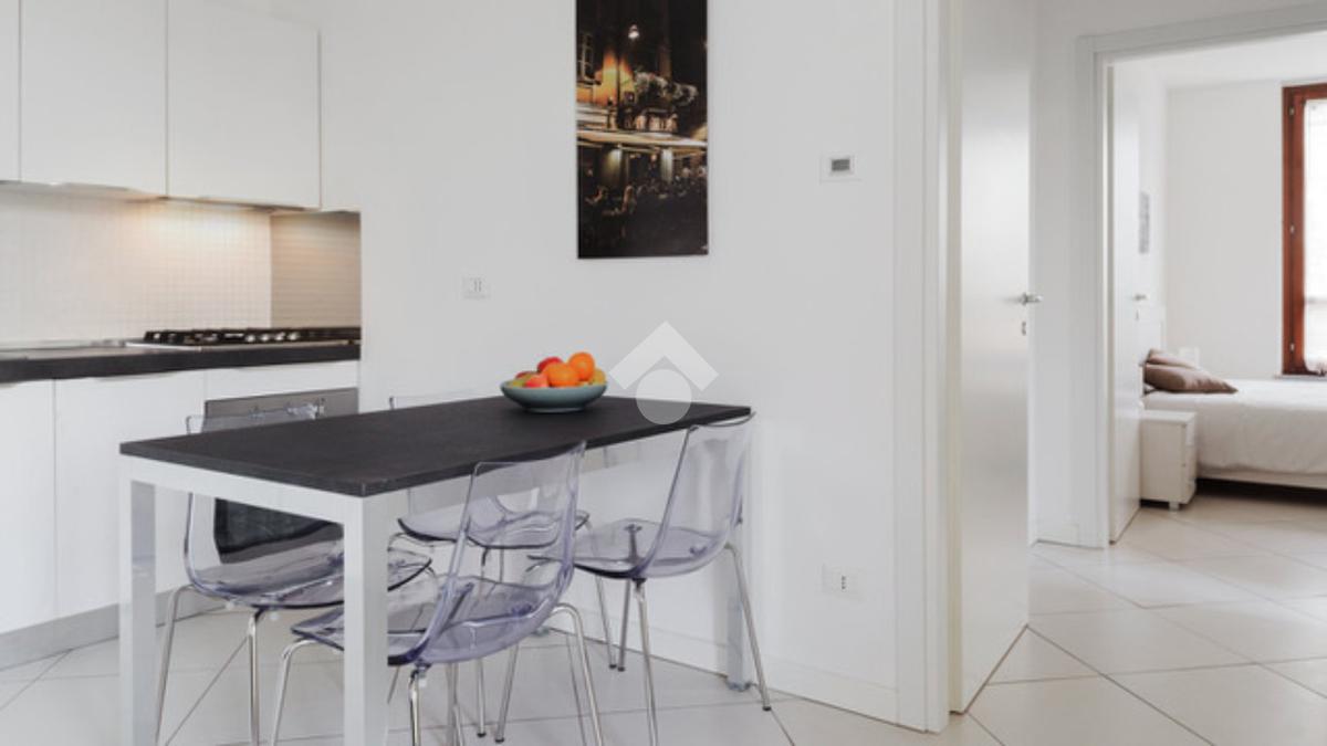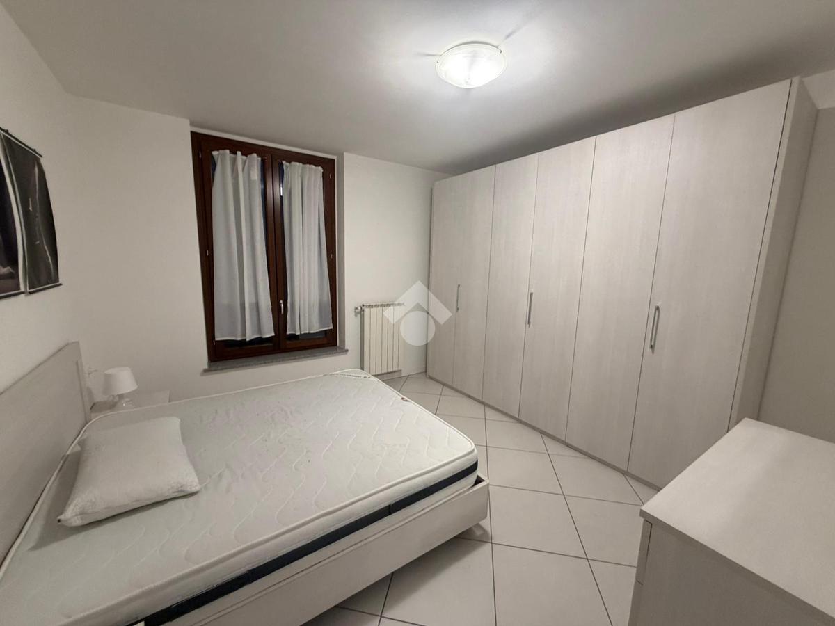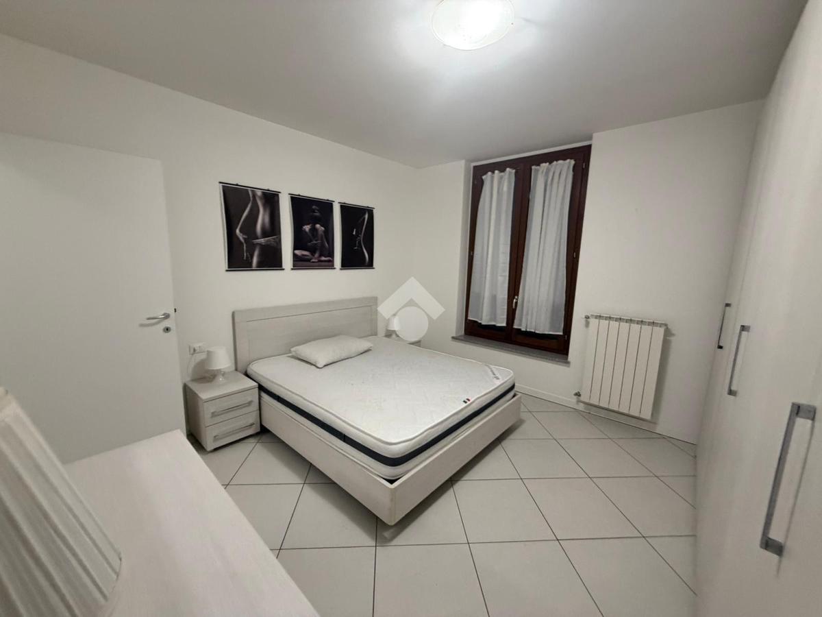 L'appartamento risulta essere così composto: Ingresso in ampia e luminosa zona living composta dal soggiorno con cucina a vista e con accesso diretto, tramite porta finestra, al balcone completo di zanzariere. Di seguito il disimpegno che separa la zona giorno dalla zona notte. In essa troviamo una camera da letto matrimoniale con punto luce e servizio finestrato con box doccia . Plus non indifferente è da notare nella doppia esposizione che regala un’ottima luce naturale in tutta l'abitazione oltre che un’ottima areazione, creando ambienti caldi d'inverno e freschi d'estate. Infissi in doppio vetro legno e zanzariere presenti in tutti i punti luce, predisposizione aria condizionata sia nella zona giorno che nella zona notte. Lo stabile è di recente costruzione con ottimi materiali di rifinitura esterni che sposa perfettamente lo stile interno dell'abitazione, di fatti i materiali utilizzati all'interno sono anch'essi di ottima qualità. Pavimentazione in ceramica in tutti gli ambienti.
