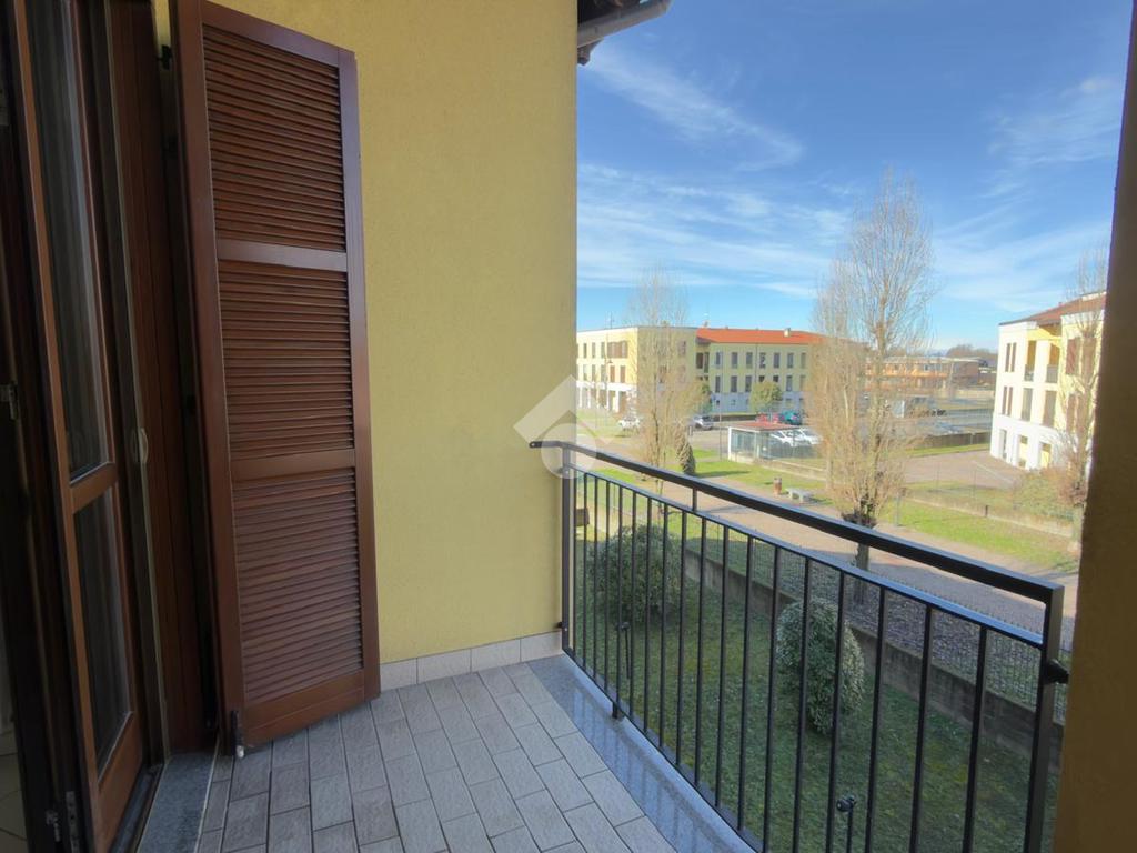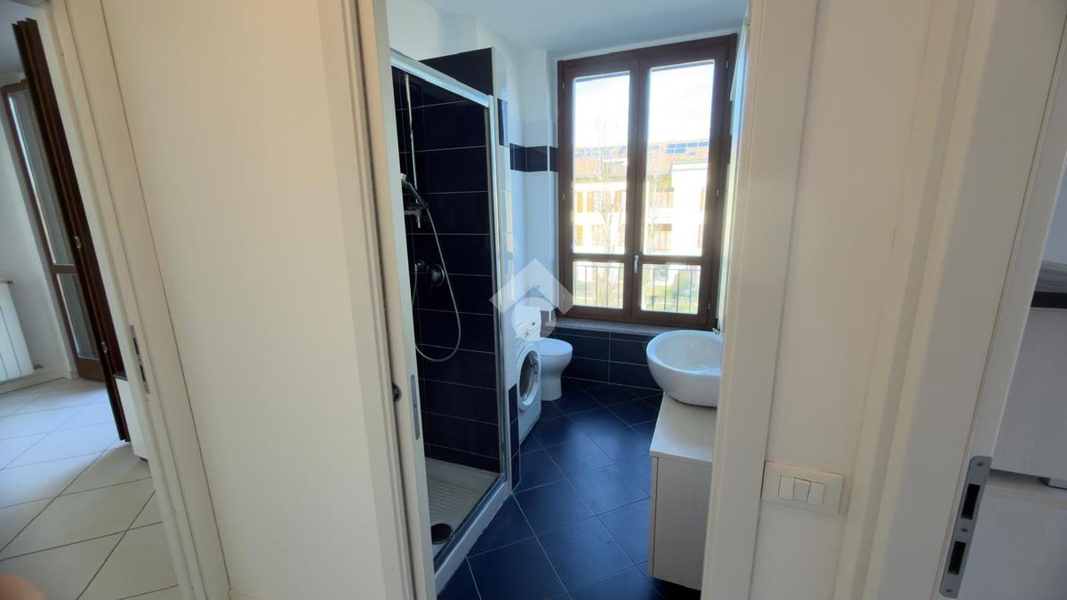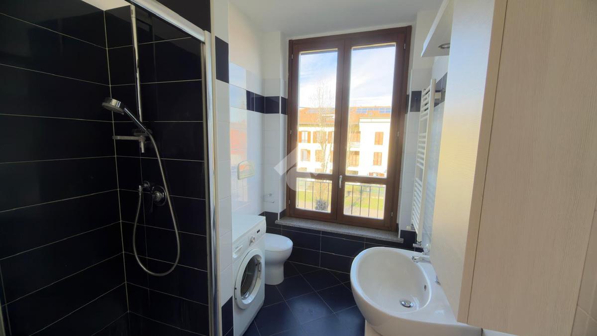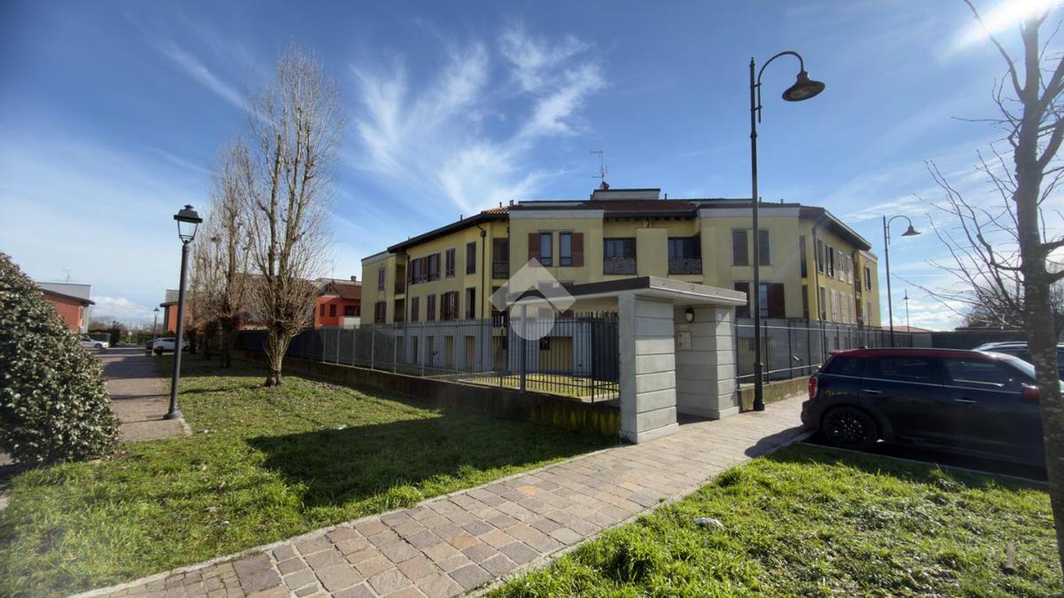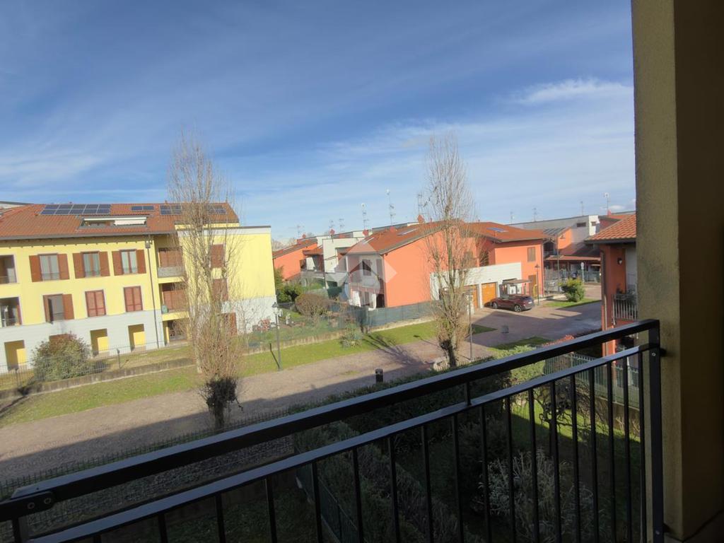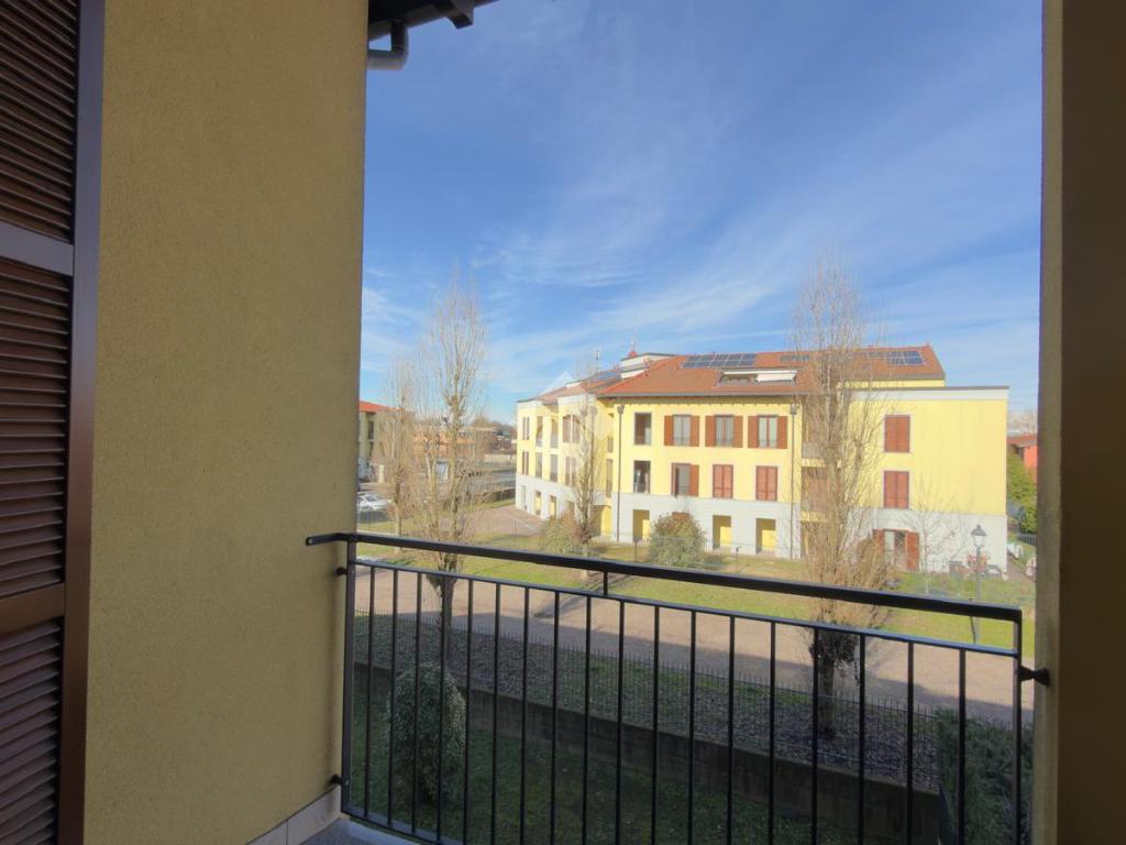BUBBIANO(MI) Via Anna Maria Mozzoni : al centro di Bubbiano, proponiamo APPARTAMENTO di due locali in ottime condizioni con balcone, cantina e box di pertinenza con fermata dell'autobus vicino casa, fornita di tutti i servizi di prima necessità. L'appartamento risulta essere così composto: Ingresso in ampia e luminosa zona living composta dal soggiorno con cucina a vista e con accesso diretto, tramite porta finestra, al balcone completo di zanzariere. Di seguito il disimpegno che separa la zona giorno dalla zona notte. In essa troviamo una camera da letto matrimoniale con punto luce e servizio finestrato con box doccia . Plus non indifferente è da notare nella doppia esposizione che regala un’ottima luce naturale in tutta l'abitazione oltre che un’ottima areazione, creando ambienti caldi d'inverno e freschi d'estate. Infissi in doppio vetro legno e zanzariere presenti in tutti i punti luce, predisposizione aria condizionata sia nella zona giorno che nella zona notte. Lo stabile è di recente costruzione con ottimi materiali di rifinitura esterni che sposa perfettamente lo stile interno dell'abitazione, di fatti i materiali utilizzati all'interno sono anch'essi di ottima qualità. Pavimentazione in ceramica in tutti gli ambienti.