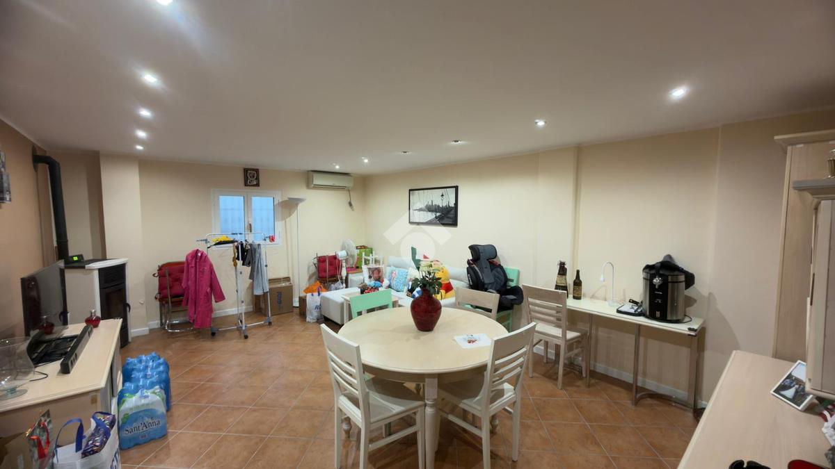 La soluzione si sviluppa su due livelli: l’ingresso è al piano terra dal giardino esclusivo piastrellato con angolo barbeque e con accesso diretto all’ampia taverna con punto luce e stufa a pellet, cantina e servizio attualmente utilizzato come lavanderia anch’esso finestrato. Tramite scala esterna dal giardino, si accede al piano superiore dove troviamo un balcone e porta d’ingresso blindata.