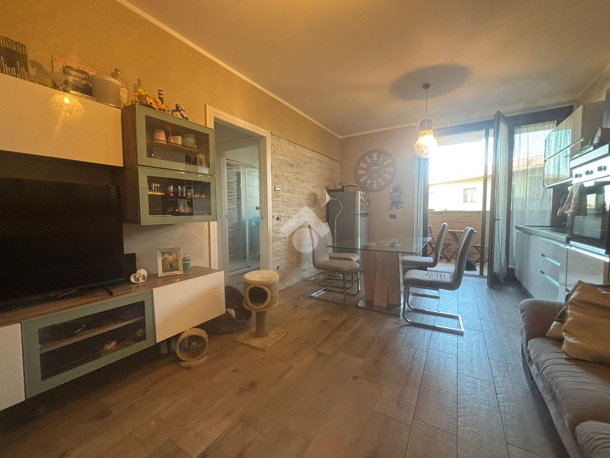 L'appartamento risulta essere così composto: Ingresso che si apre subito nell'ampia zona living, con cucina a vista, dalla quale accediamo al primo plus: il balcone vivibile con vista aperta sulla via. Proseguendo, tramite disimpegno, accediamo alla zona notte, caratterizzata da un’ampia camera da letto con punto luce un comodo bagno finestrato con box doccia .
