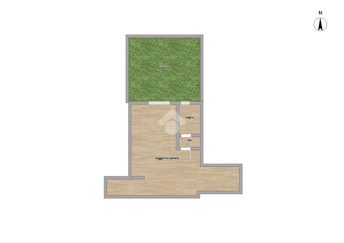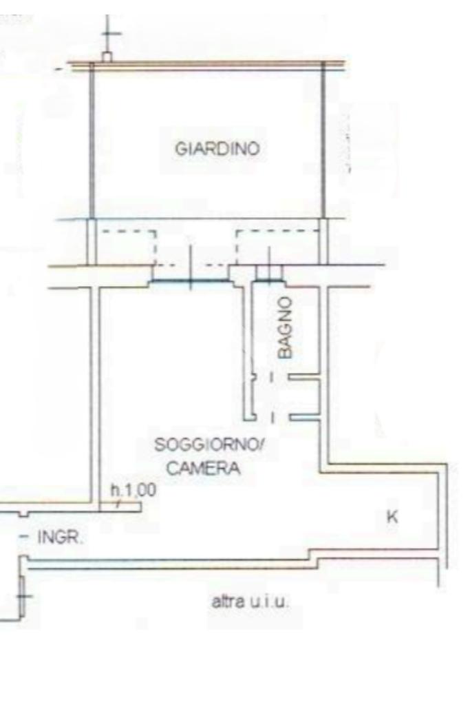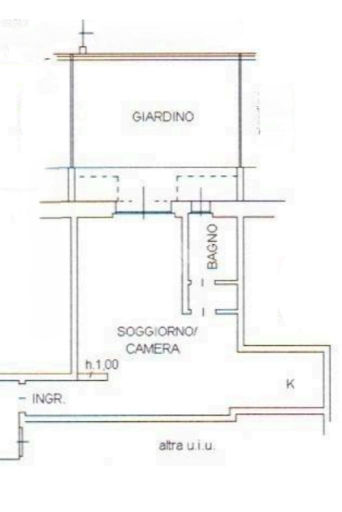 L’immobile risulta essere così composto : ingrasso al piano terra mediante corridoio ove si apre l’ampio e luminoso open space con mobilio su misura, angolo cottura e accesso diretto al giardino privato che si affaccia sull’interno. Proseguendo dalla zona giorno, accediamo all’antibagno con lavabo e bagno con box doccia.