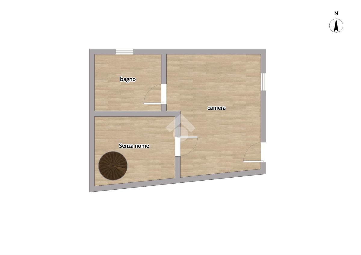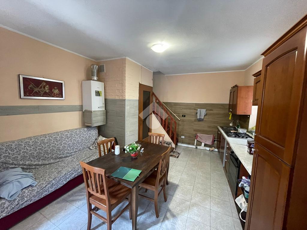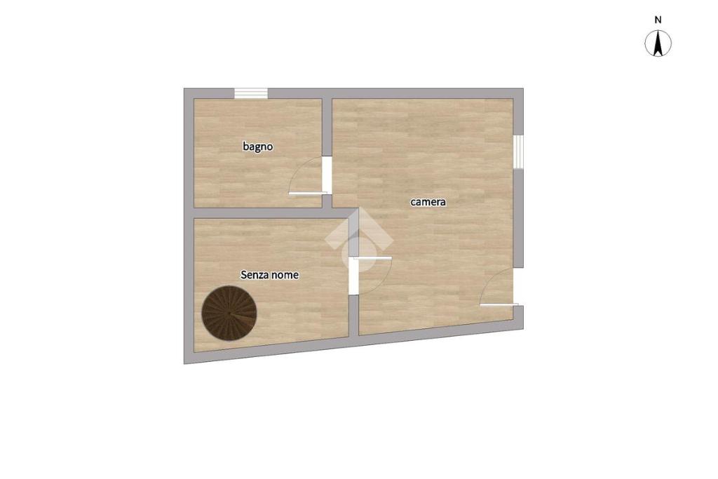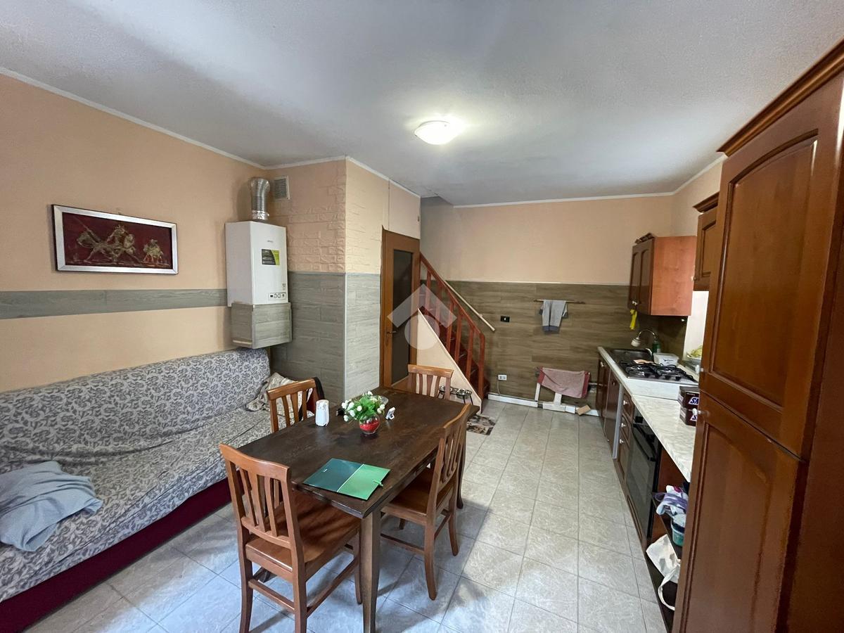 L’immobile è così composto : al piano terra si sviluppa la zona giorno con un soggiorno con cucina a vista e punto luce con affaccio interno. Proseguendo dal soggiorno, una comoda scala in legno porta al primo piano dove si sviluppa la zona notte con camera da letto con split di aria condizionata e con doppia porta finestra con infissi in PVC con doppi vetri, e un bagno finestrato con doccia multifunzione.