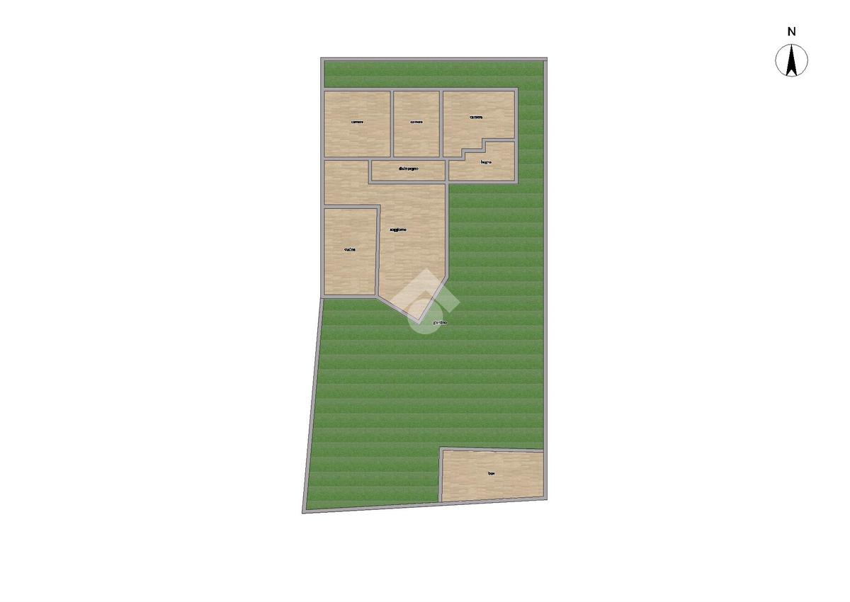 L’immobile è composto da: ingresso diretto nell’ ampio soggiorno con doppio punto luce, subito sulla sinistra accediamo alla cucina angolare abitabile finestrata. Procedendo, mediante disimpegno, si accede alla zona notte caratterizzata da: due camere da letto matrimoniali con punto luce con affaccio sull’ interno sul giardino, bagno finestrato con box doccia, ed infine, camera da letto matrimoniale con bagno in suite con vasca.