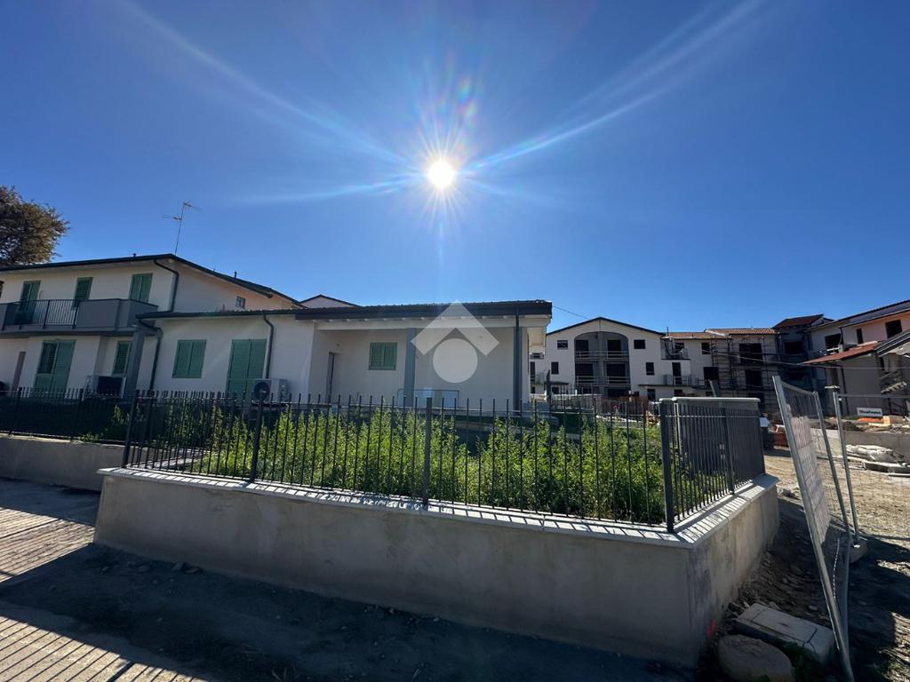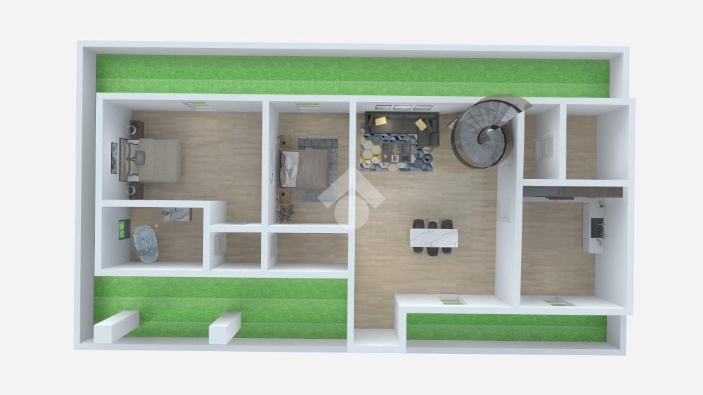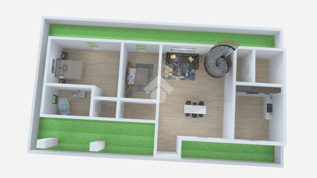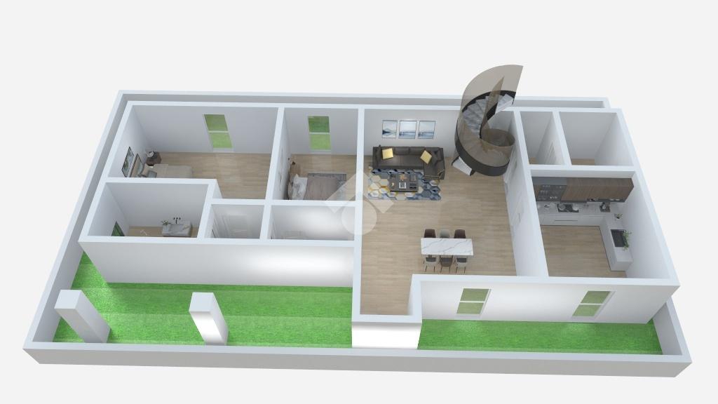 Al piano terra vi è un’ampia e luminosa zona giorno living oltre doppi servizi e zona notte con due camere da letto. Zona terrazzata esterna con giardino privato.