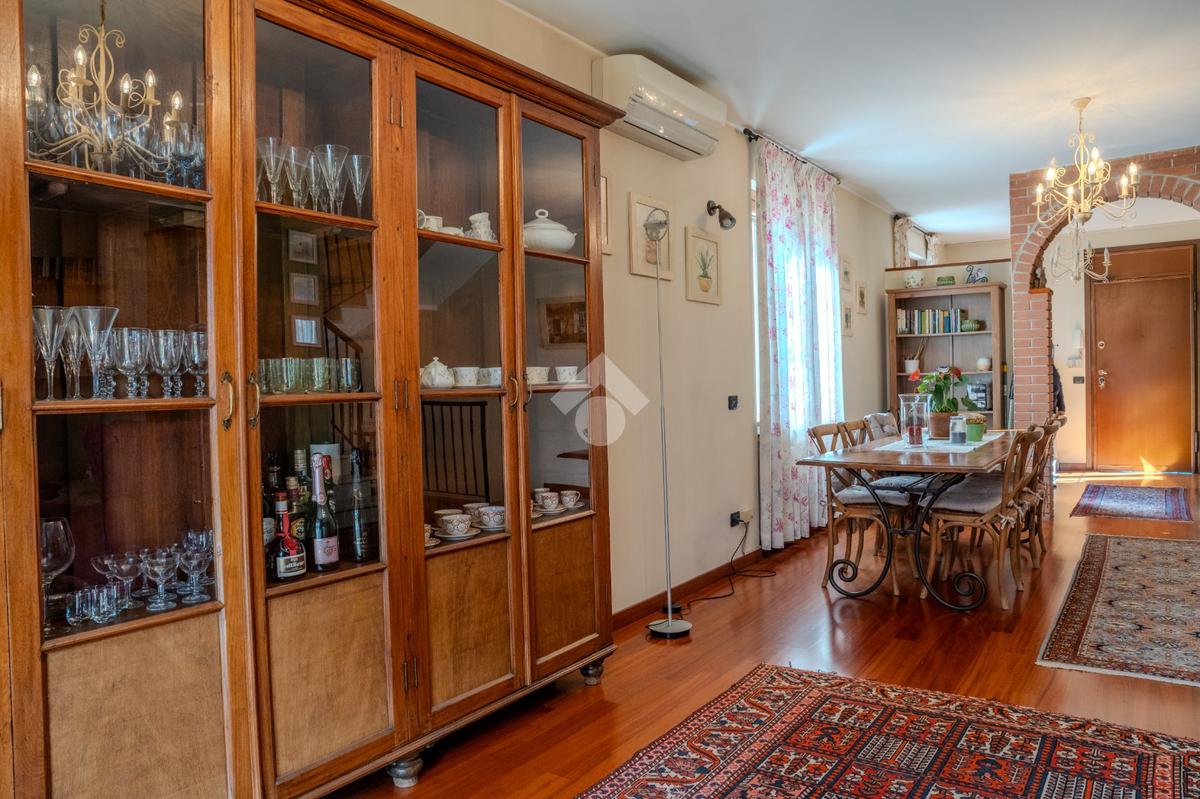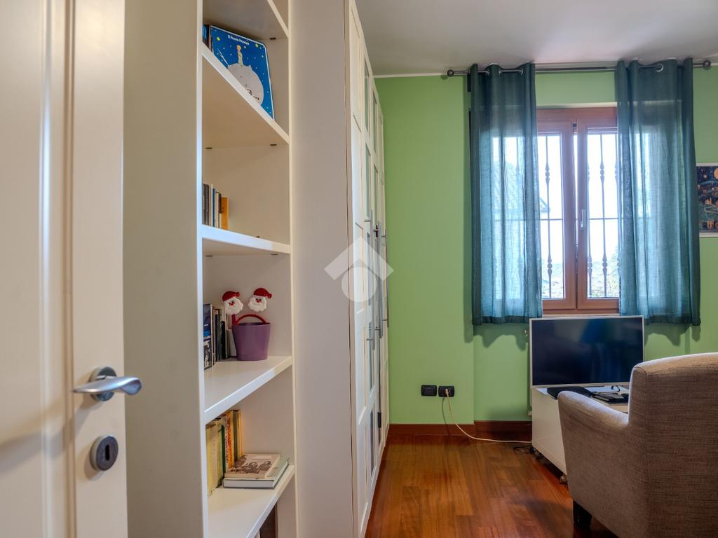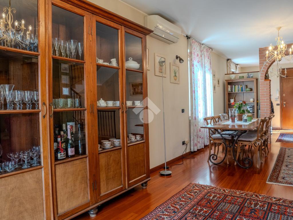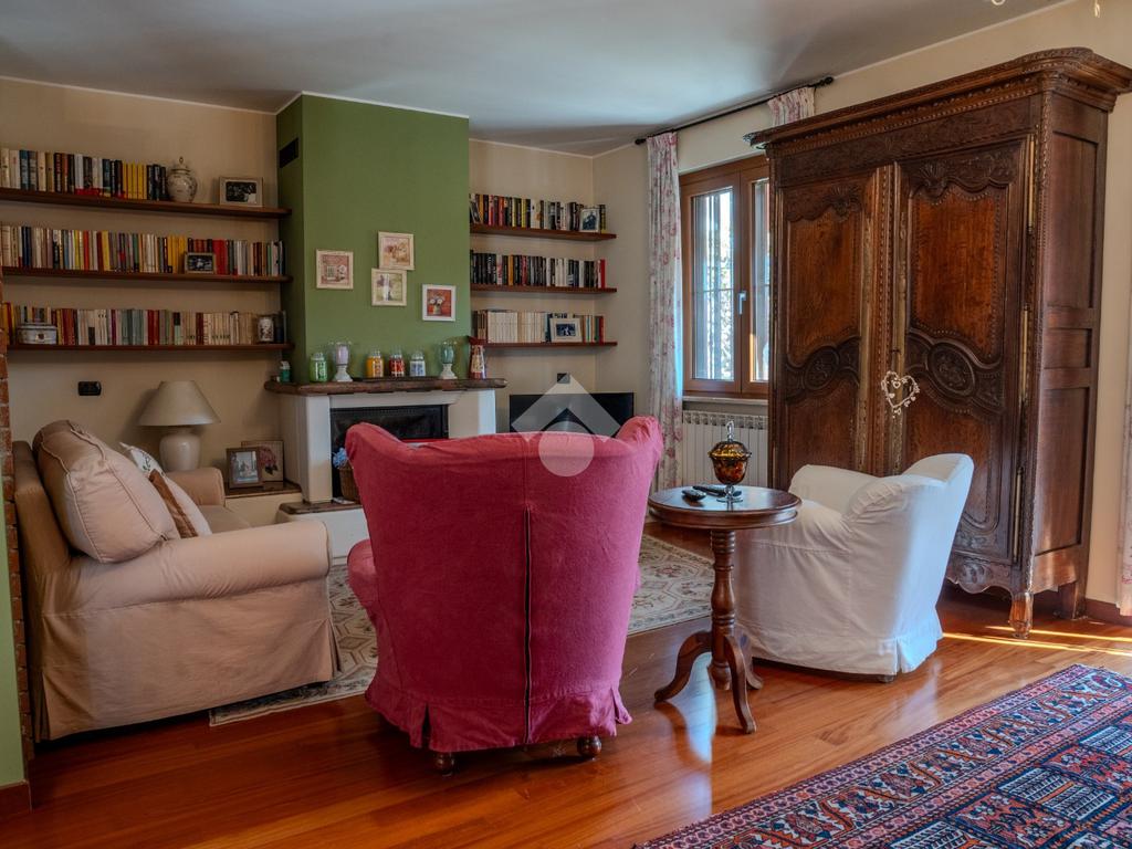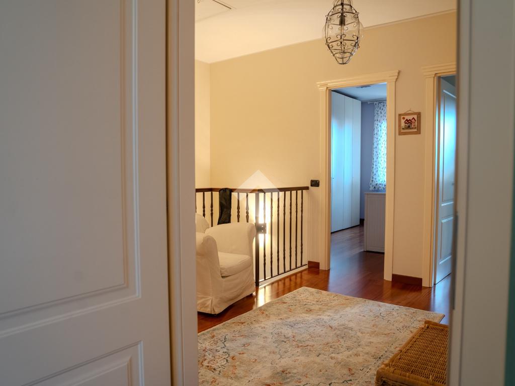 L’ingresso al piano terra si apre su un luminoso soggiorno di generose dimensioni, valorizzato da tripla esposizione che garantisce un’eccellente luminosità naturale durante tutto l’arco della giornata. L’ambiente, rifinito con parquet di pregio, è reso particolarmente accogliente dalla presenza di un suggestivo camino e dettagli architettonici come arco in muratura. Presente inoltre impianto di climatizzazione caldo/freddo.