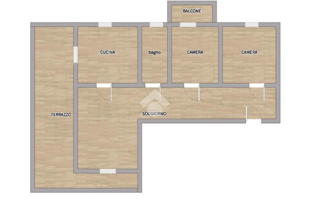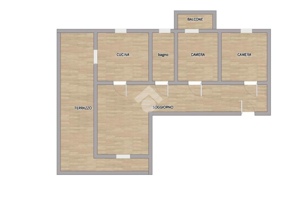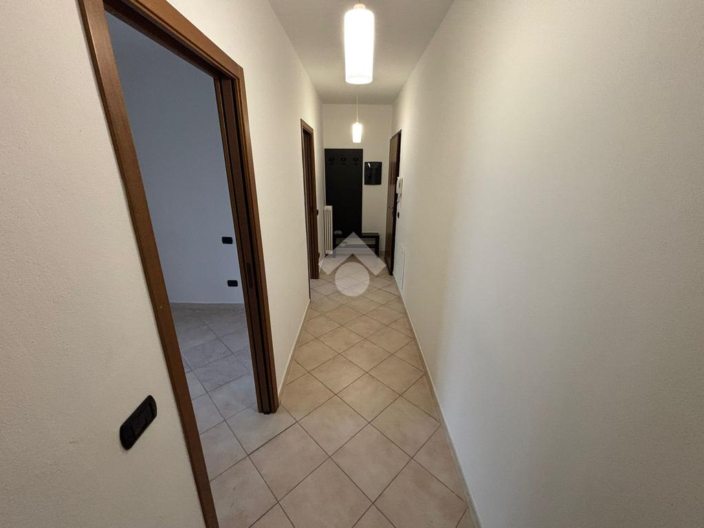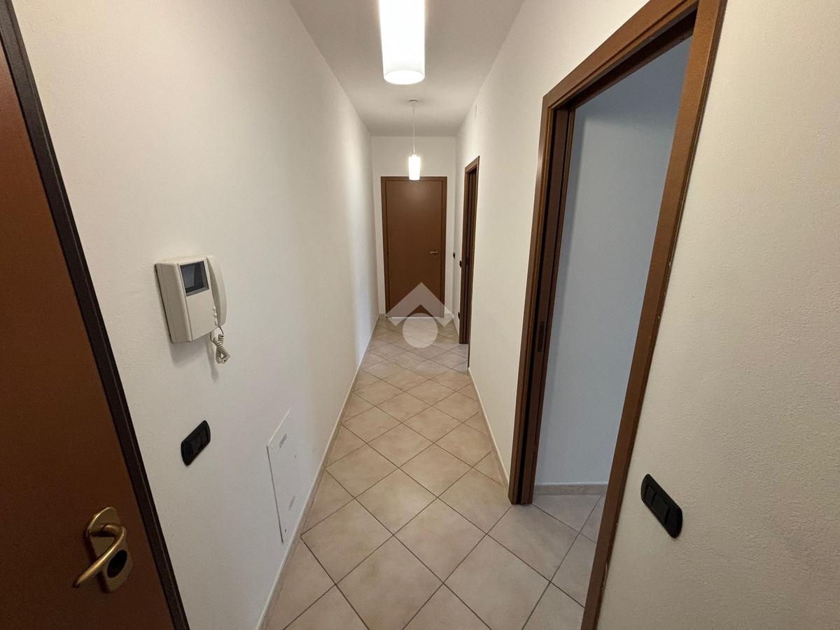 Ingresso in disimpegno con corridoio dove si aprono le 2 camere da letto di cui una con balcone, servizio finestratio e lavanderia, cucina abitabile e soggiorno con affaccio diretto sul terrazzo.