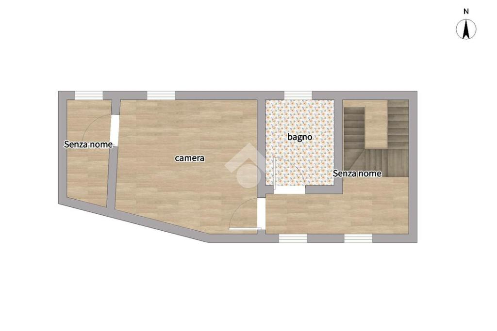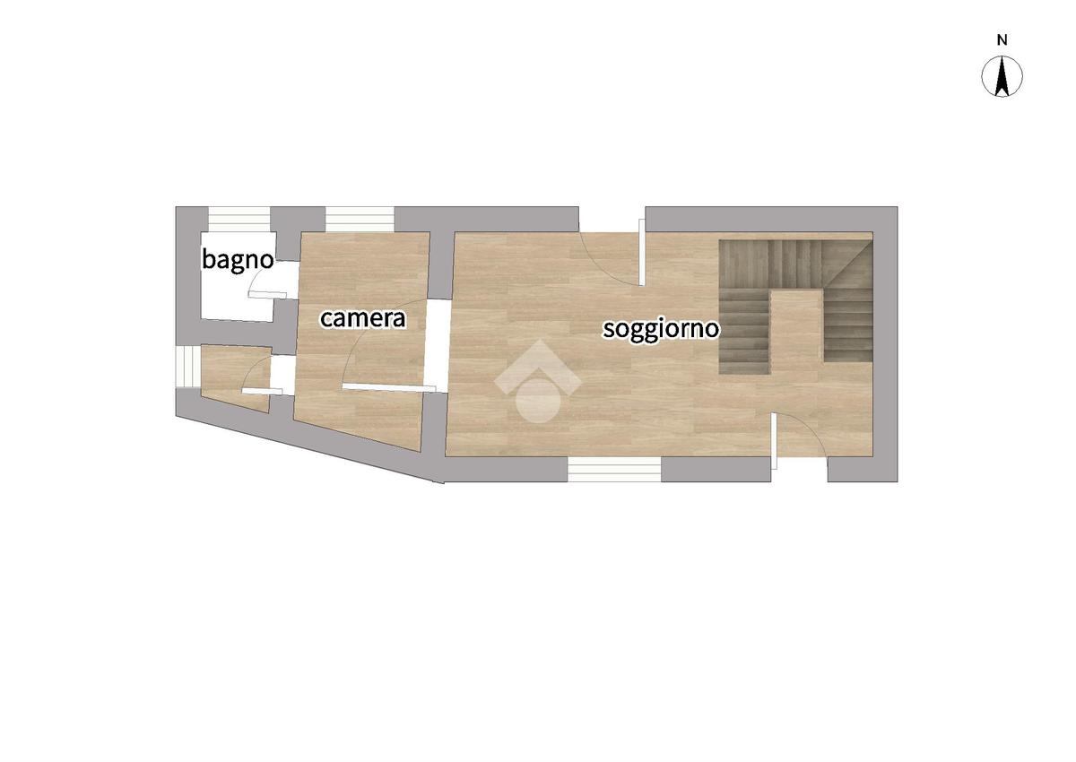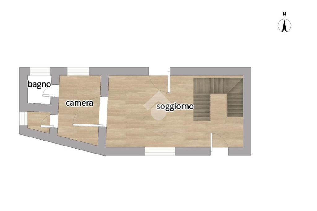 L’immobile è cosi composto: ingresso al piano terra ove è sviluppata la zona living con soggiorno con cucina a vista, bagno di servizio finestrato. Proseguendo, mediante scala, si accede alla zona notte caratterizzata da due camere da letto con punto luce di cui una con cabina armadio ed un secondo servizio finestrato con box doccia e vasca.